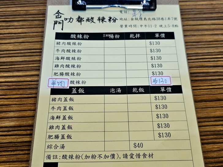 【金門‧金城食記】叻都酸辣粉~午餐~營業時間、訂位電話、菜單價目表、公車及交通資訊