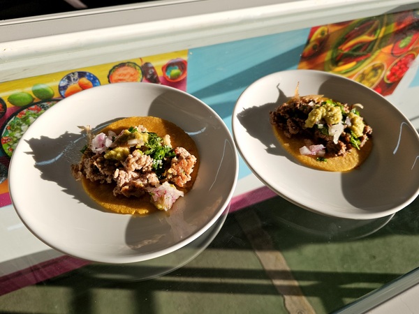 當時老闆告訴其他顧客明天會有不辣的Taco跟Quesadilla...