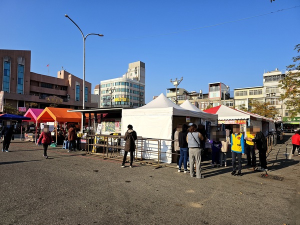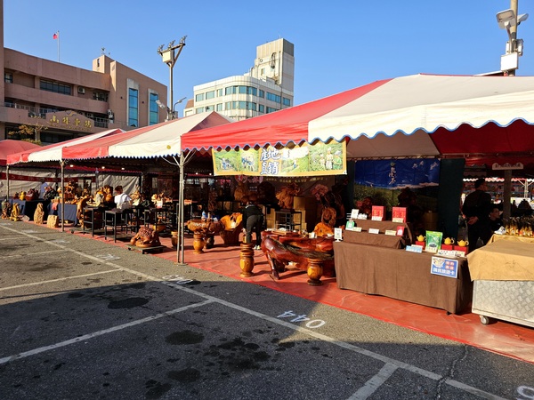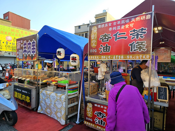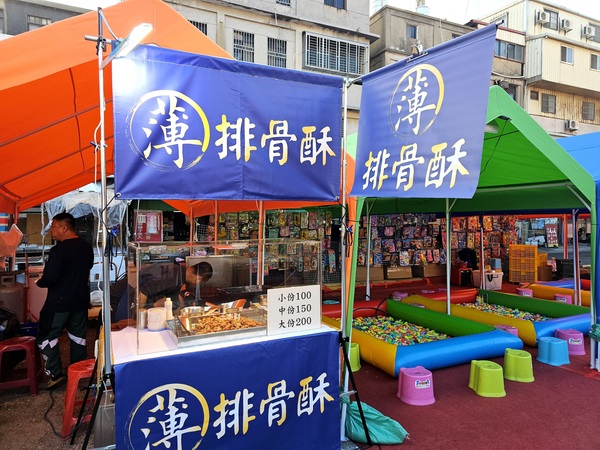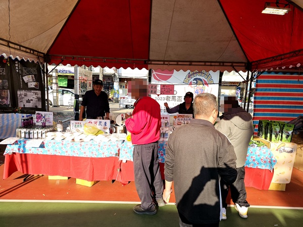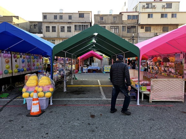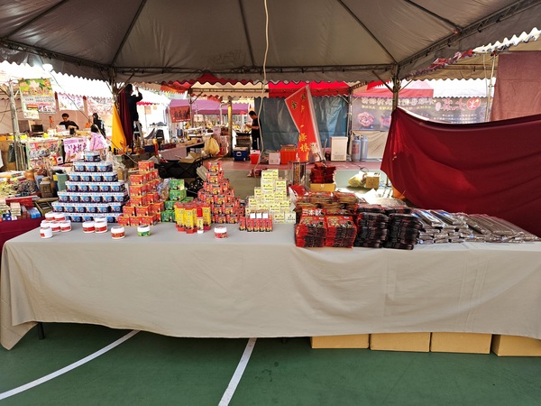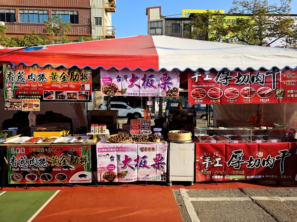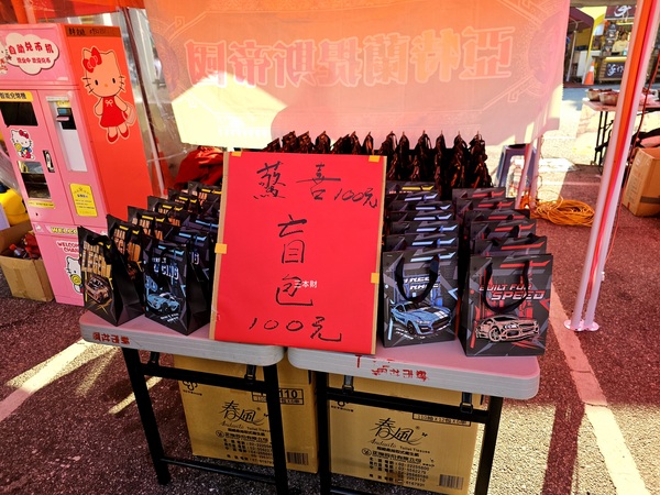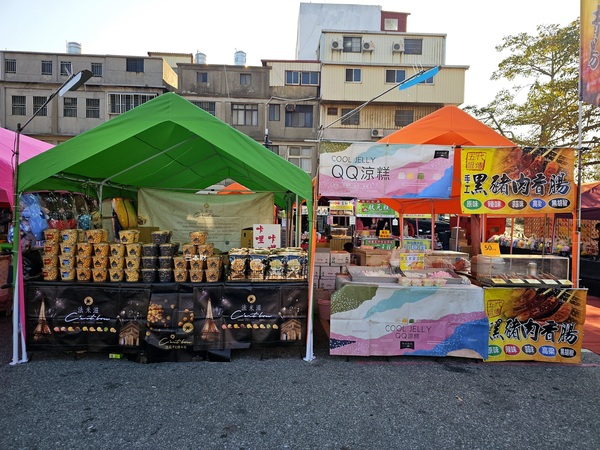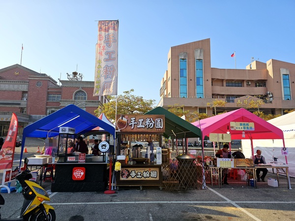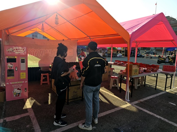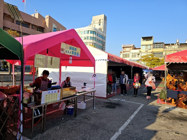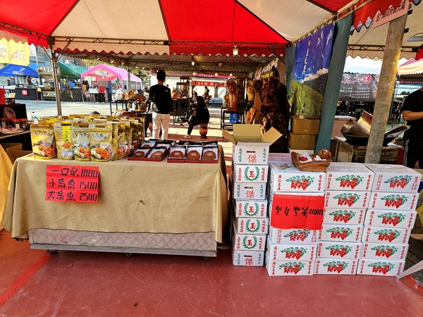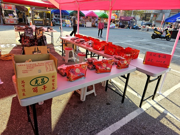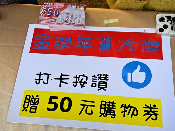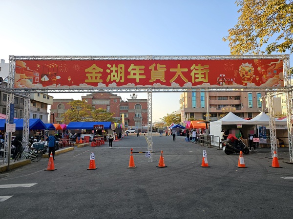 前幾天跟同事到山外國賓影城看完電影準備回金城時無意間看到新市里籃球場旁掛上斗大的金湖年貨大街的字樣,當下我打電話問山外田轎仔知不知道年貨大街?當時田轎仔回我:有聽朋友說金門縣政府與金湖鎮公所準備在新市籃球場那邊封路辦活動...昨天下午跟同事翹班順便約了田轎仔一起去逛了一回年貨大街,我們抵達會場時看到不少夜市的老面孔,服務台那邊更是擠滿不少親鄉正在參與主辦單位於每天下午14點推出拍照打卡贈送50元園遊券的活動...