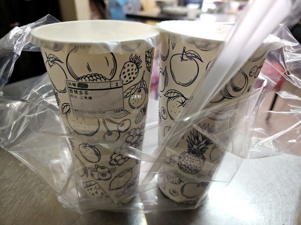 我跟同事點了2杯香蕉多多+1個提袋~66元