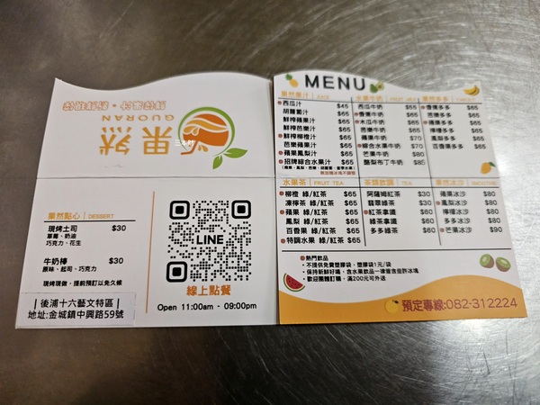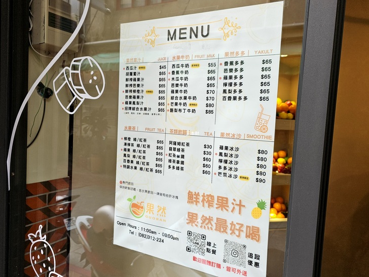 【金門‧金城食記】果然果汁~營業時間、訂購電話、菜單價目表及交通資訊