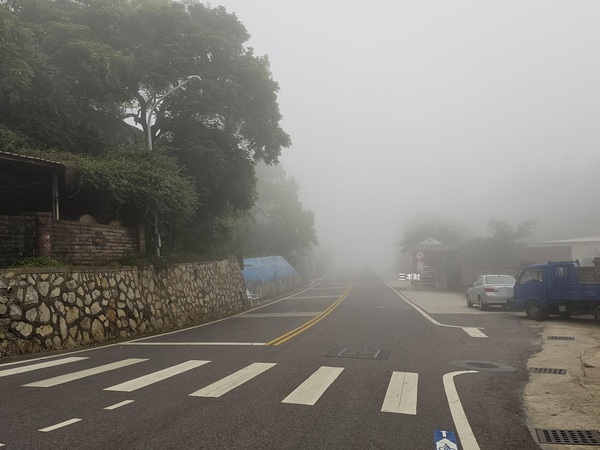 來到榜林圓環時/中央公路全都是霧