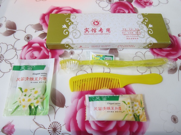 洗髮乳、牙刷、牙膏、梳子、香皂