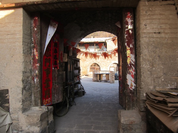 沒想到當天來接我們的反倒是老闆的兒子,小老闆一看到行李之後隨即改叫一輛摩的五花大綁將我們的行李直接送回客棧去,抵達客棧時我才發現原來老闆還有經營古玩店,隨後小老闆就帶我們去看一下住宿的環境並說道:磧口古鎮的行政區屬於呂梁市臨縣,他們家的窯洞建於明代中期至今已有300多年的歷史,他們家除了經營客棧跟古玩店之外,還有提供家常炒菜及包車的服務,窯洞標準間一晚80塊、窯洞三人房一晚100塊,隔天早餐每人10塊錢管飽...