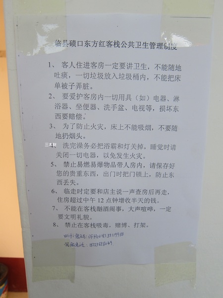 這回我們在磧口古鎮第一晚選擇入住東方紅客棧,會選擇東方紅最主要的原因是:1.該客棧的房間是屬於改良式的〝窯洞客房〞2.當時磧口古鎮有不少的旅宿業者無法待港澳台的遊客3.老闆願意到公車站接駁我們的超大件隨身行李...
