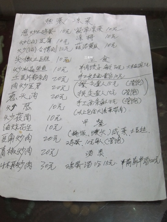 手寫的菜單