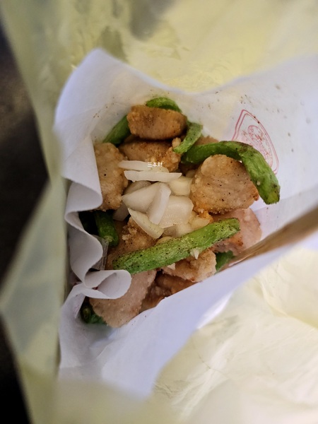 當天我買了一份鹹酥雞~大100元+1份四季豆~30元