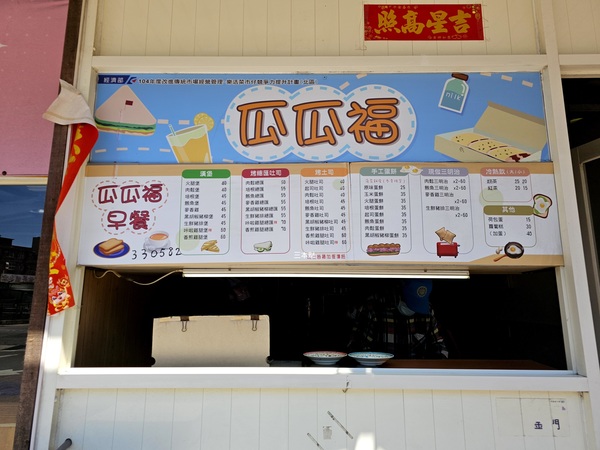 工作的關係大部分的時間我的活動範圍都在金門的西半島,但有時需要出公差我會到其它鄉鎮去混水摸魚,偶爾一早到山外洽公的時候我就會選擇在這裡吃早餐;瓜瓜福早餐位於金湖的公有零售市場,位置還蠻好早的就在阿菊飯糰的旁邊,店家提供中西式的餐點:漢堡、烤總匯吐司、烤土司、手工蛋餅、現做三明治、其它及飲料...