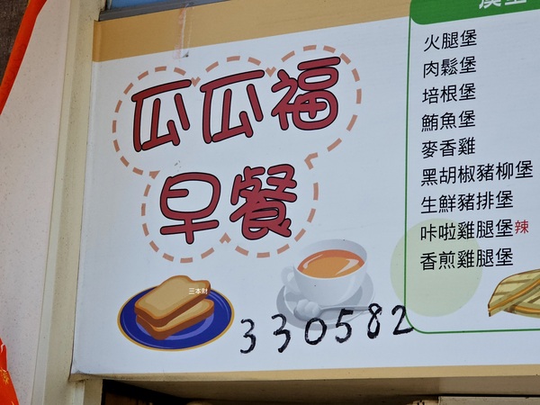 左轉過來就會看到第一排的瓜瓜福早餐店