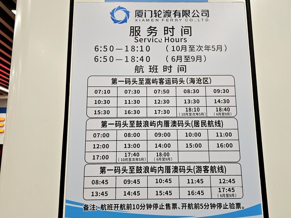 鼓浪嶼航線自動服務區