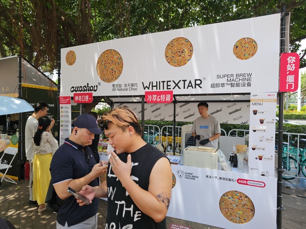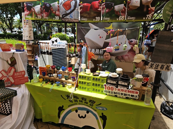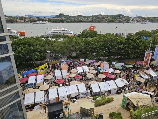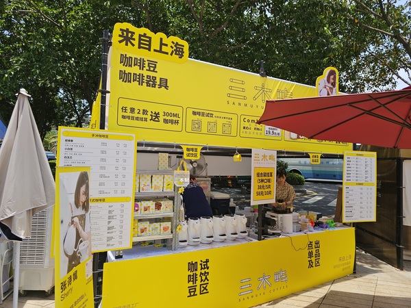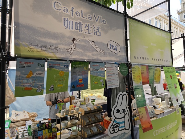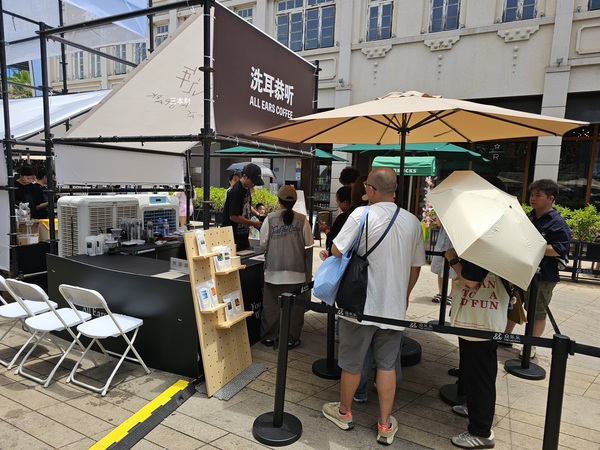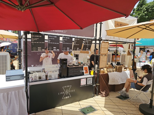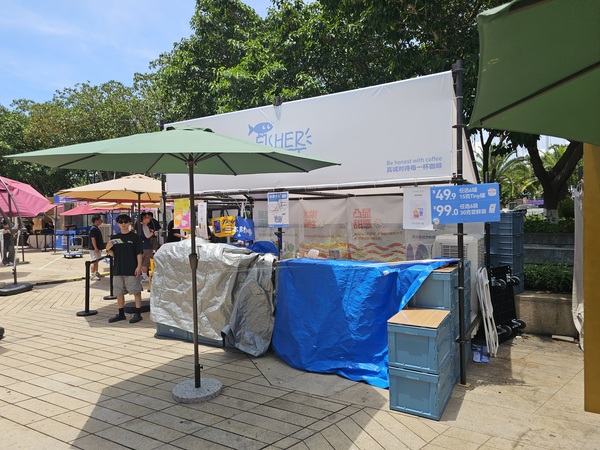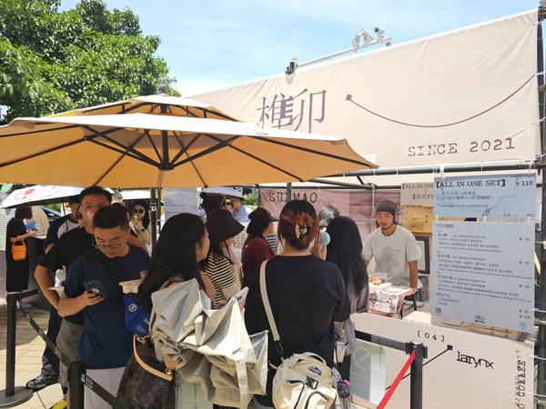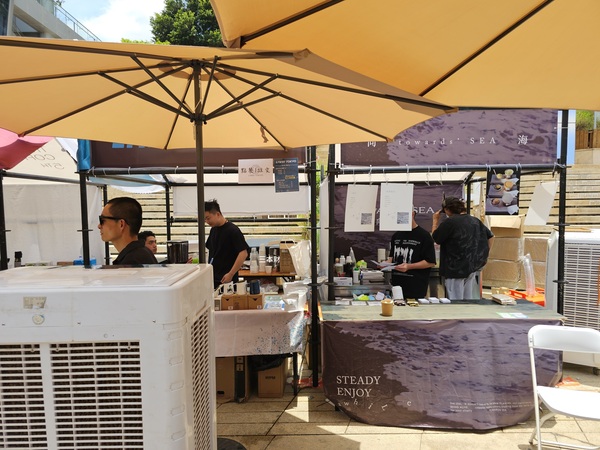 這次的活動地點在鷺江道上從東邊的海港英迪格酒店前方廣場到西邊的水仙路口,前一天我跟多位好友準備前往海港英迪格酒店辦理入住時路過,當時現場只能用人海人海來形容,也看到好幾個攤位大排長龍,於是我們決定隔天吃完早餐後再過來逛逛,當天來到現場詢問不少民眾後我們兵分3路排隊購買:榫卯/河南新鄉、洗耳恭聽/河南鄭州、村口大樹/上海的排隊咖啡...