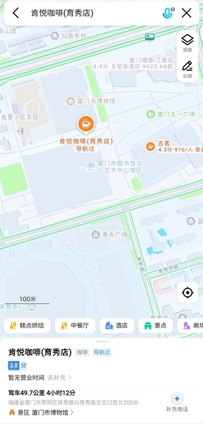 剛開始我們用高德導航肯悅咖啡K Coffee育秀店的位置在廈門圖書館旁邊