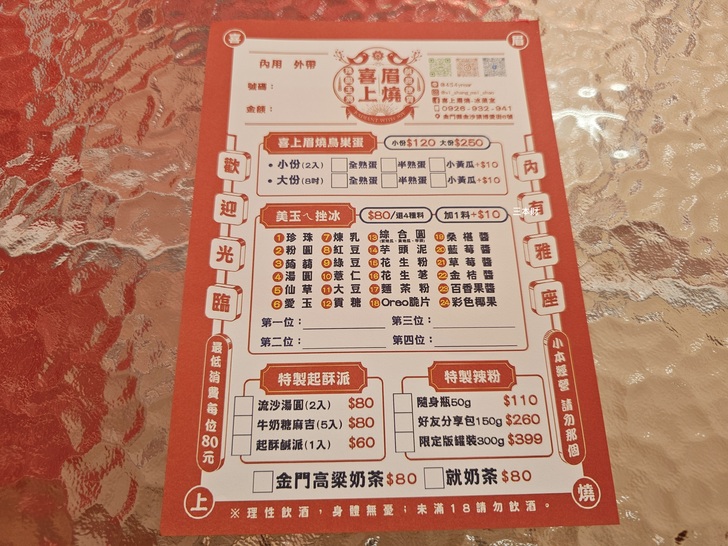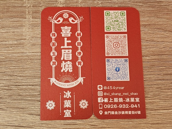 【金門‧金沙食記】喜上眉燒冰菓室~營業時間、訂購電話、菜單價目表及交通資訊