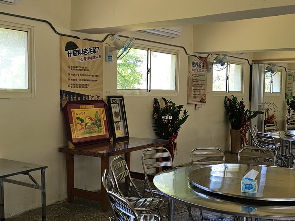 餐廳兩側有超過40個曾在金門地區駐防單位的三角標誌讓老兵們簽名留念...