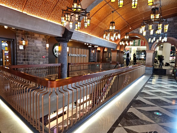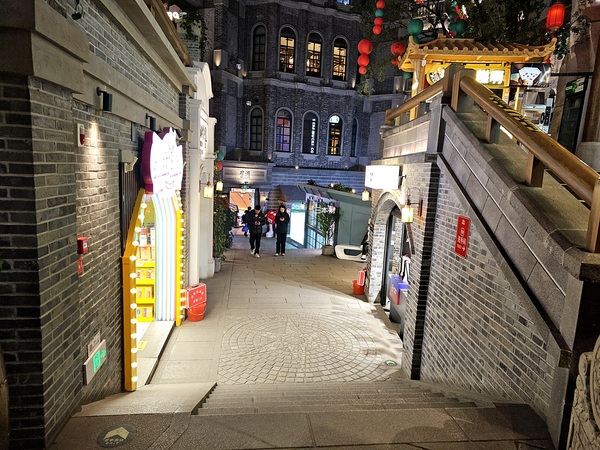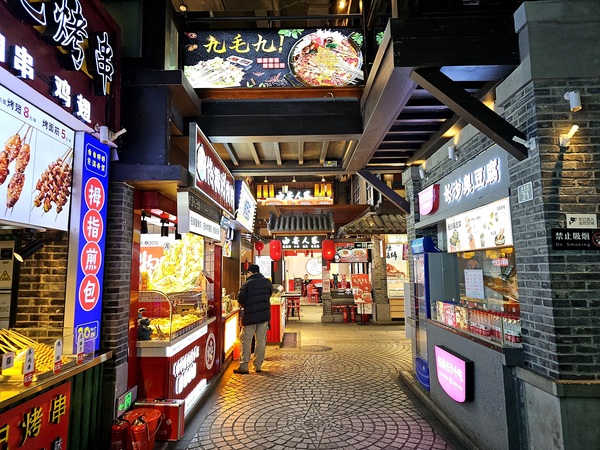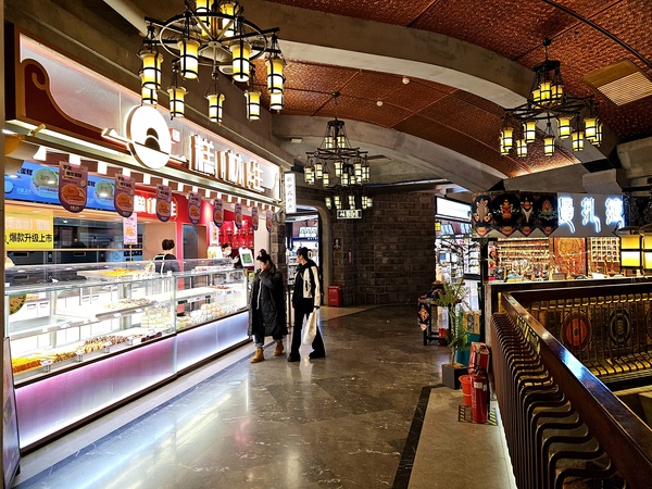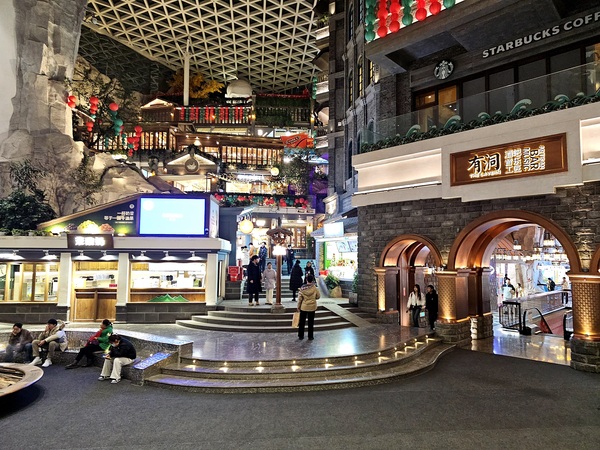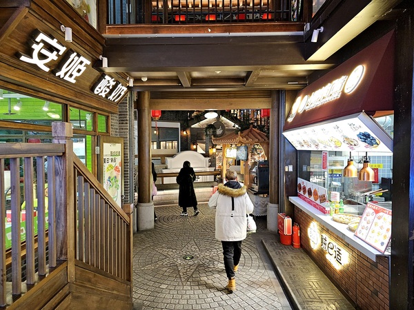 拖了好幾個月總算能打開檔案上傳照片!逛完山頂劇院街、護佑院、下山道以及下山小道之後我們繼續往F2層的箱箱街走下走,一路上看到大都是賣吃的店舖比較多,當天晚上還看到一位販售糕點的東北姑娘打扮成〝女濟公〞造型來吸引顧客上門,來到F1看到的商鋪以飲料店居多,1層的室內廣場這裡聚集了不少拍照的遊客,畢竟當時戶外的溫度不到5度,同行有幾位好友有點不適應東北的低溫,幾天後當我在群組裡上傳雪鄉的照片時,某些人就後悔說沒有跟我去哈爾濱...