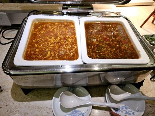 春誼賓館的住宿分為迎賓樓及貴賓樓但早餐統一在貴賓樓的2樓用餐,酒店的自助早餐定價為48塊人民幣主要以中式為主,優惠住店客成人每位38塊/折合台幣約164.88元、12歲以下小孩則是免費用餐!前一晚入住長春這有山舍客棧的幾位好友由於酒店沒有提供早餐,因此隔天一早起床後就直接搭乘計程車過來春誼賓館一起吃早餐,早餐最特別的大概是外觀很像雙胞胎且口感紮實的油條...