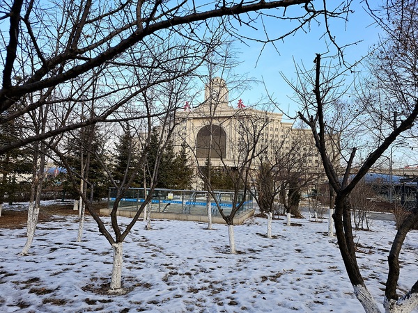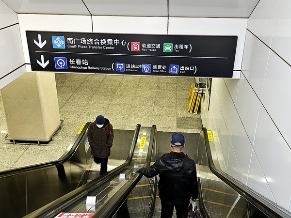 在春誼賓館吃完早餐後大家隨即起身前往長春站搭乘地鐵/捷運前往偽滿皇宮,吃早餐時候好友問我長春地鐵怎麼買票?我笑說:我上一次來長春後直接坐高鐵去長春機場搭飛機去長白山,返程也是如此抵達長春站後直接坐火車北上哈爾濱所以問我也沒用!因為我跟你們一樣也是頭一回搭長春地鐵,在步行前往地鐵長春站的路上已經明顯感受到戶外低溫,也看到地上不少的殘雪,經過長春火車站前方的公車站我還特地跑去看了一下長春公車的票價/空調車2塊錢...