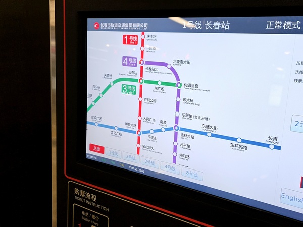 【吉林‧長春交通】長春軌道交通/地鐵~地鐵3號線路線圖、長春站→開往→偽滿皇宮站、長春站自助售票機、票價、乘客服務中心及候車月台