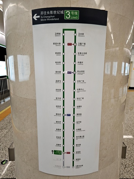 地鐵3號線是從長影世紀城站←往返→偽滿皇宮站