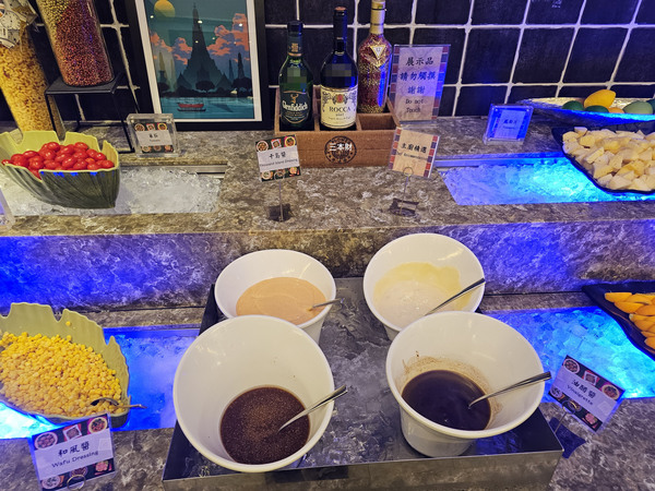 高粱巧克力塔、芭樂果凍、芒果椰奶西米露、泰式斑斕奶酪