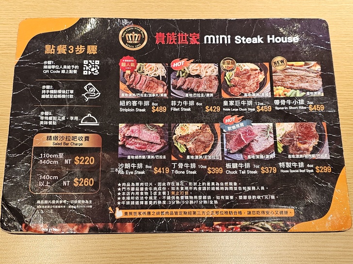 我們點了2份特製牛排~299元