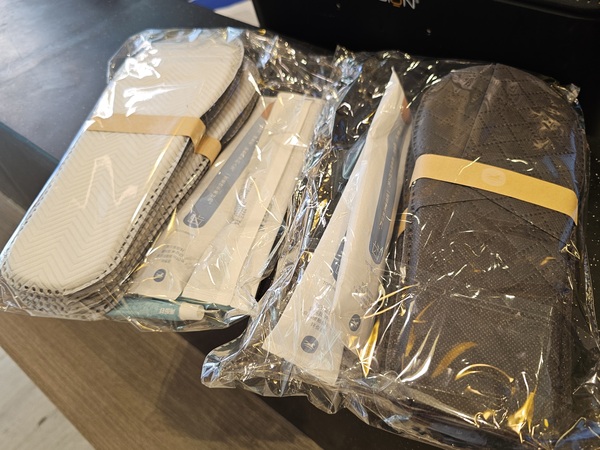 辦理好入住手續後櫃台人員會一人數給您盥洗包跟客房拖鞋