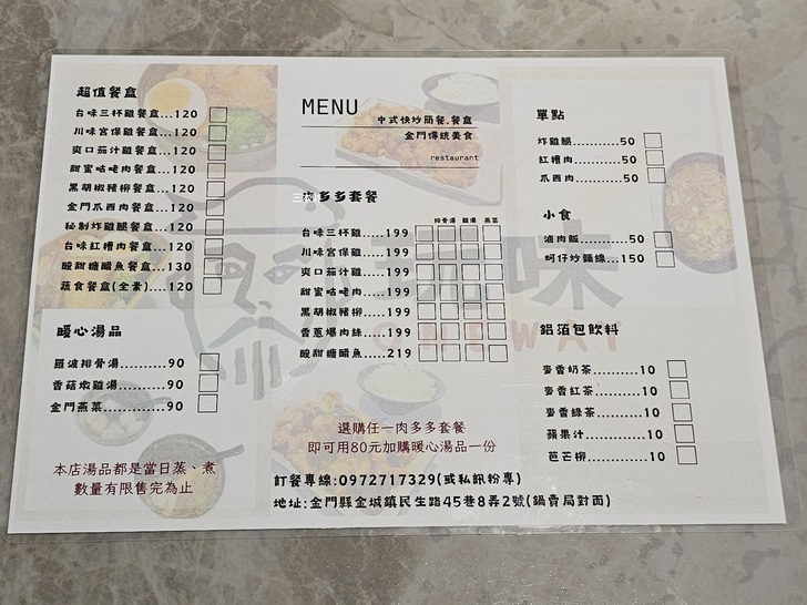 【金門‧金城食記】玩味食堂 Oneway ~晚餐~營業時間、訂位電話、菜單價目表及交通資訊