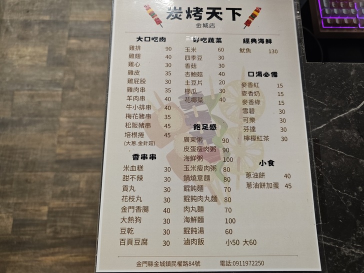 去年6月山外地區的黃海路上開了一家碳烤天下直營店,上個月底加盟的金城店也開始試營運,金城店位於民權路上/王大夫一條隔壁、大廟口斜對面;鋒面過境今天下午開始金門的氣溫逐漸下降,下班前大家聊了一下幾位住宿舍的同事相約晚餐去吃火鍋,而我約二貨跑來吃燒烤,原本還想約山外田轎仔只是他回我山外就有碳烤天下天不想出門,更搞笑的是他說:剛從福州跨年回來還在〝調時差〞...