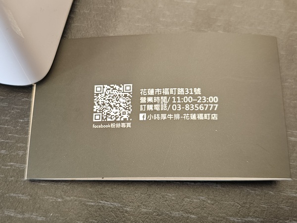 小時厚牛排是六扇門旗下的品牌,從店家的臉書發現花蓮福町店是在2025年11月27日開幕,這一天跟好友騎車路過福町路時意外發現這邊新開了2間餐廳~小時厚牛排花蓮福町店及老先覺麻辣窯燒鍋花蓮福町店,剛吃過午餐的我當下問好友晚上要不要吃小時厚?好友點頭後我們直接去問營業時間,看了一下菜單排餐價位從190元~390元不等,雖然已過午餐時間但店內還是有不少的用餐客人,從這裡往前再走一點就是花蓮東大門夜市,值得注意的是該店內用並無用餐時間限制因此不接受訂位,除此,這間牛排館營業到凌晨12點...