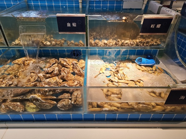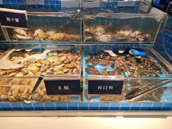 去年跟多位台北好友到廈門旅行也曾造訪過漁緯港,那一次是降價後第一次上門,當我們來到湖里萬達廣場的漁緯港時詢問櫃檯:由於降價的原因我跟友人並不知道〝活海鮮區〞的品項是否有減少?能否帶好友先看一下菜色?櫃台人員說:沒問題可以先看菜色再決定要不要用餐,多位好友進去看完海鮮區後樂呵呵的告訴我趕快去結帳付款...