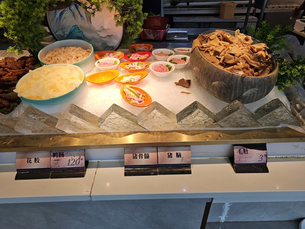 花膠、鴨腸、豬骨隨、豬腦、毛肚