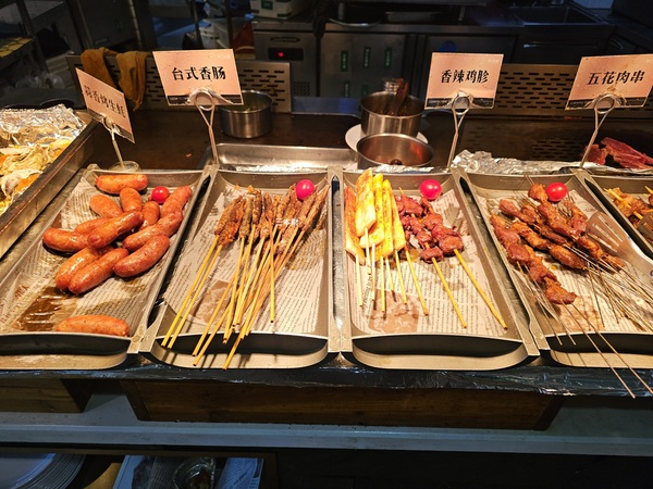 蒜香烤生蠔、台式香腸、香辣雞胗、五花肉串