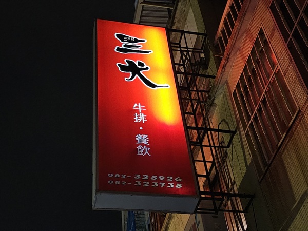 三犬是金門在地老字號的餐廳,而我一路從珠浦北路、莒光路吃到民族路93巷!只是我最鍾愛的雞腿飯也從原本130元漲到現在200元;3個多月前我跟山外田轎仔上門啃雞腿時就看到店門口的漲價公告,當時隨口問了店員原本180的雞腿飯漲價後是多少?店員:一客200!某一天下午我翹班跟田轎仔在星巴克喝咖啡的時候田轎仔問我:三犬雞腿飯漲價後我去吃過幾次?我笑說:一次都沒有!田轎仔問我:要不晚上去吃三犬?