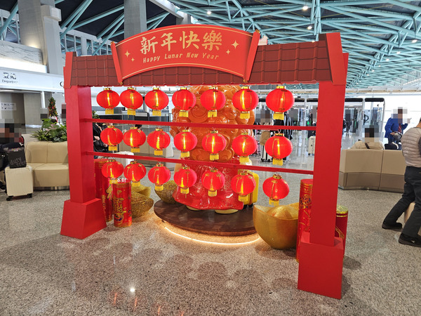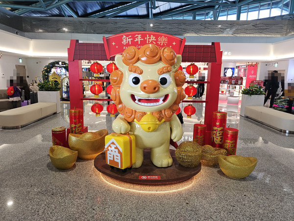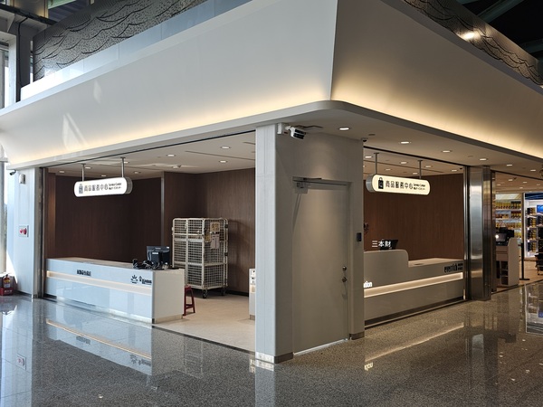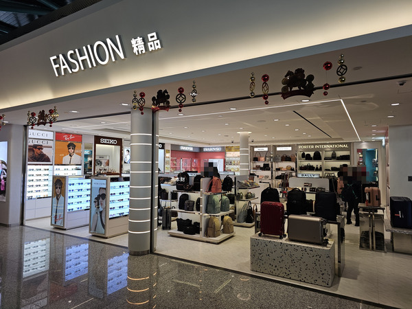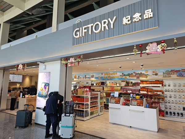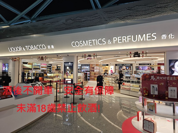 左邊是風獅爺免稅店、金坊免稅商店的櫃台,右邊是昇恆昌免稅店櫃台