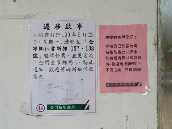 〝頂堡郵局〞於2020年搬到仁愛新邨那邊並更名為〝金寧郵局〞!