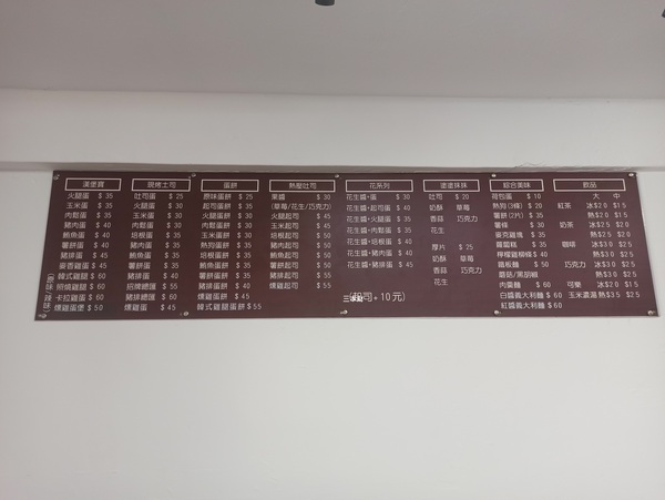 牆上的價目表