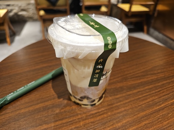 買了一杯黑糖粉圓芋泥奶茶~21塊,