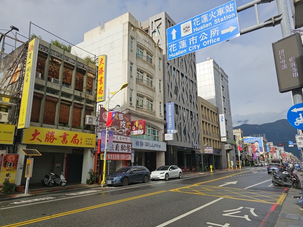 當您步出花蓮前站後請往大馬路走並注意您的左前方那一棟建築物!