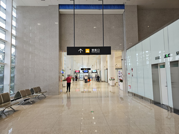 洗手間請往前直走、登船口/休息區請向右轉