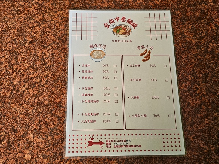 【金門‧金城食記】新址~金尚中卷麵線~營業時間、訂購電話、菜單價目表、公車及交通資訊