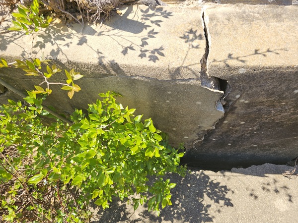 基座因長出樹木已經裂開