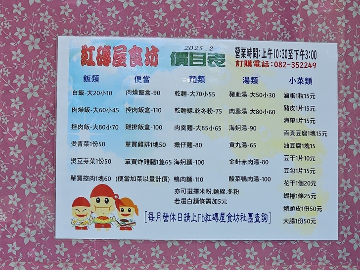【金門‧金沙食記】紅磚屋食坊~午餐~營業時間、訂購電話、最新菜單價目表、公車及交通資訊