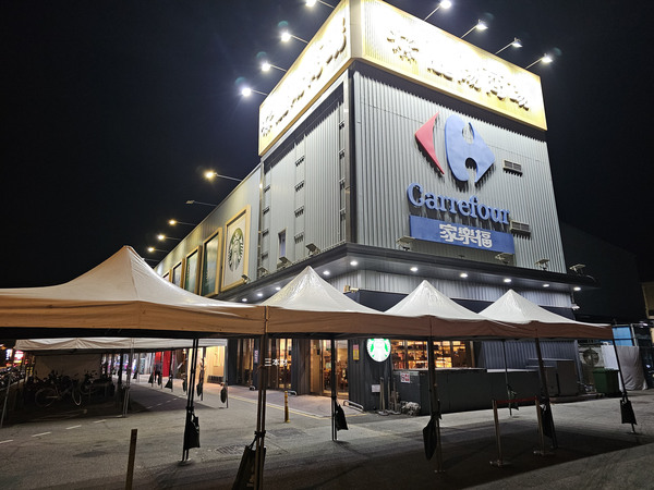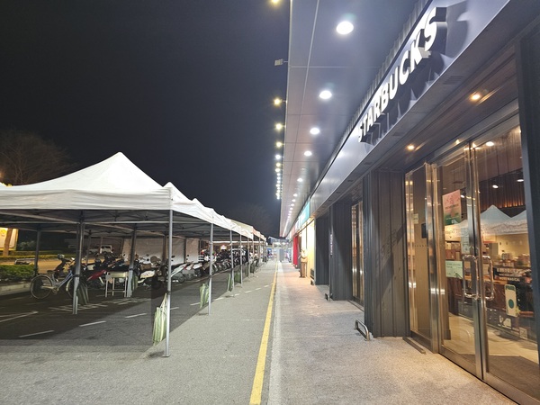 這2天金門開始變天轉陰氣溫也有些下降,中午在辦公室吃便當時我打電話給山外田轎仔問他下午有沒有空喝咖啡?田轎仔笑說:是喝咖呢?還是去逛家樂福夜市?前天傍晚我跟同事下班後到小東石鍋吃火鍋時就看到這裡已經架好棚子了...這檔家樂福金門市集自03月20日起至04月06日止前後共計18天...