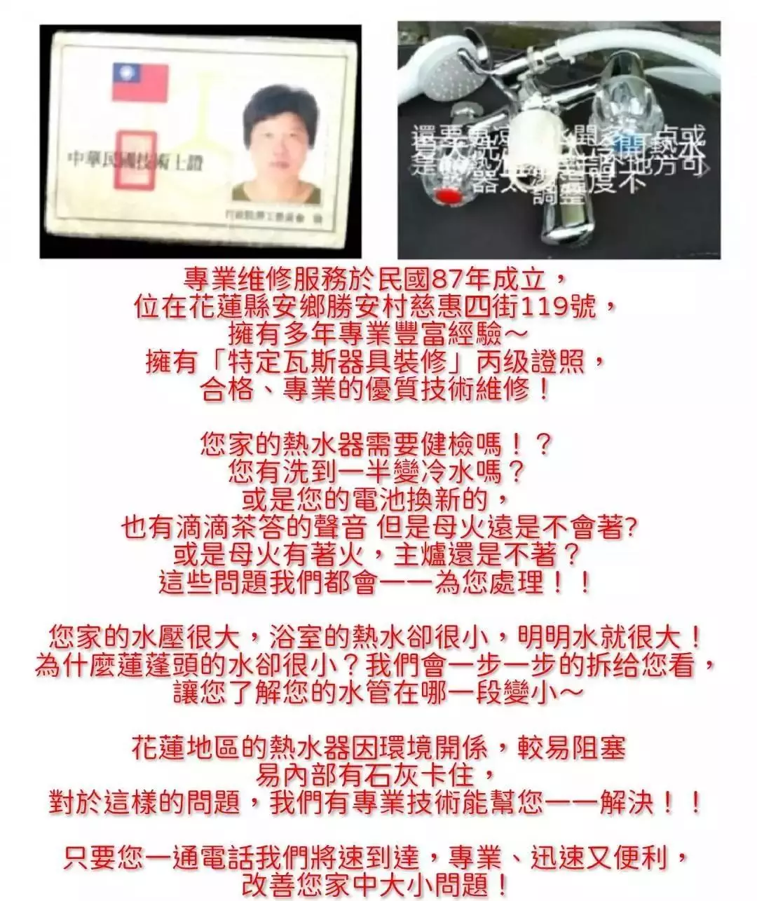 我們的專業維修服務始於國87年,秉持著專業、用心、迅速、細心的態度,致力於為每一位客戶提供最優質的服務。多年來,我們在花蓮地區深耕,積累了豐富的經驗和良好的口碑,贏得了廣大客戶的信賴和喜愛。