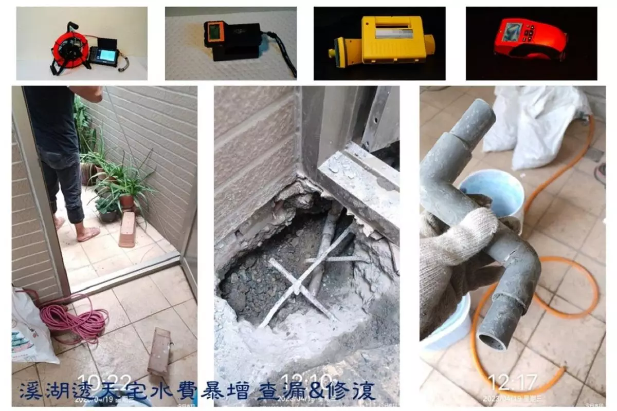 水費暴增地面以下的水管,精準定位水管破裂處,開挖修復。