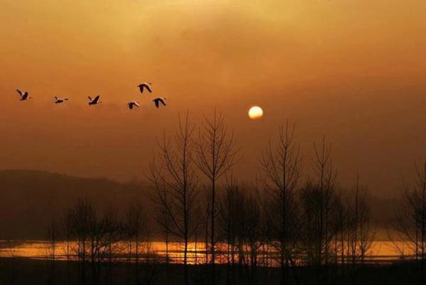 江南江北八九月,葭蘆伐盡洲渚闕, 欲下未下風悠揚,影落寒潭三兩行, 天涯是處有菰米,如何偏家來瀟湘。