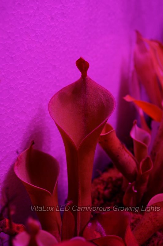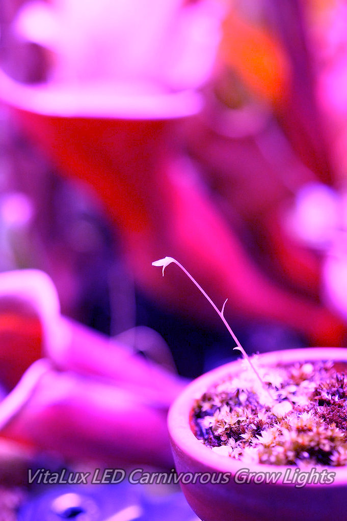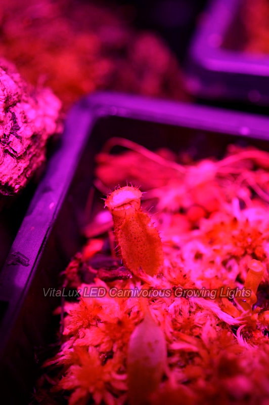 冬天對於種植食蟲植物的朋友來說,可能是件挺煩惱的事情,室外太冷,為了保命不得不將食蟲植物搬進室內,而室內的光照不免差一點、甚至差很多…這時候,LED食蟲植物燈會是一個不錯的選擇。對於初級LED植物燈使用者,建議google一下『VITA-X LED食蟲植物燈』的相關文章,剛開始的食蟲植物LED燈不用那麼高級,選擇紅藍搭配比例1:1, 再加點紫外線(UV)的也能湊合先用了,注意功率一定要夠(每100平方公分,最少20W LED燈)。
