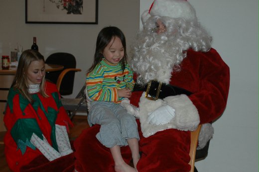 本市市府休閒娛樂部門除了辦有各項才藝教室外,每年底的活動,還包括可以付費請聖誕老公公在特定的時間,到家裡拜訪15分鐘,讓小朋友可以看到聖誕老公公真的到家裡來的經驗。今年在替小妮申請下學期的才藝課程時,心血來潮,上網預約了一個聖誕老公來我家。