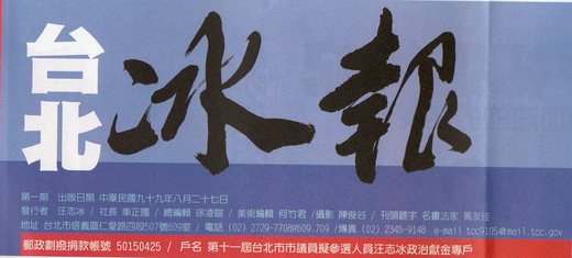 (網友朋友如欲索取「台北冰報」文宣紙本版請歡迎來電27297708#6009.6109)