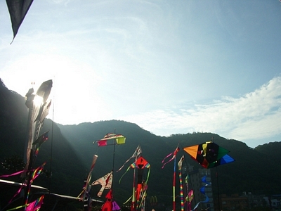 八斗子的湖境公園一點也看不出來原來是個垃圾掩埋場,坐在堤防上遠眺著海平面上像是桑妮妮﹝也就是我的愛車啦~﹞側影的基隆嶼,臨海岸邊不時傳來人們弄潮的嘻鬧聲...不知不覺夕陽已經和奇石懸壁交相輝映成一幅壯麗的山海美景,趁著落日餘暉趕緊「拾階」登上八斗子山頂﹝雖說看起來只是個“小山坡”,但走完一圈又一圈的階梯後也足以把我的“肉腳”給廢了...然後腳廢了才發現原來可以直接開車上來...Oh my God...﹞,俯瞰點點燈火闌珊的「忘憂谷」,徐徐拂面而來的海風真的會讓人頓時忘卻所有的憂煩愁苦呢...